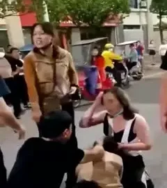 一群娘们当街互殴