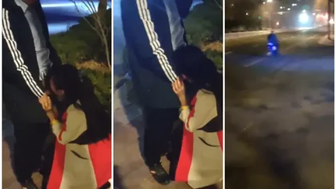 小女友很怕生摀著臉不給拍,只好用棒棒好好開通她