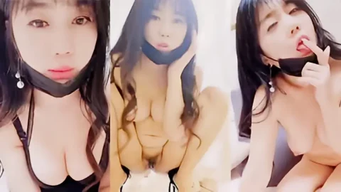 穿着红色情趣肚兜的木瓜奶妹子自慰