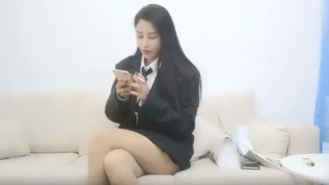 红裙美女换上制服居家操b,扶着男友大屌吸吮,边舔边自摸骚b,怼着小b一下挺入,主动骑乘扭腰一脸骚样